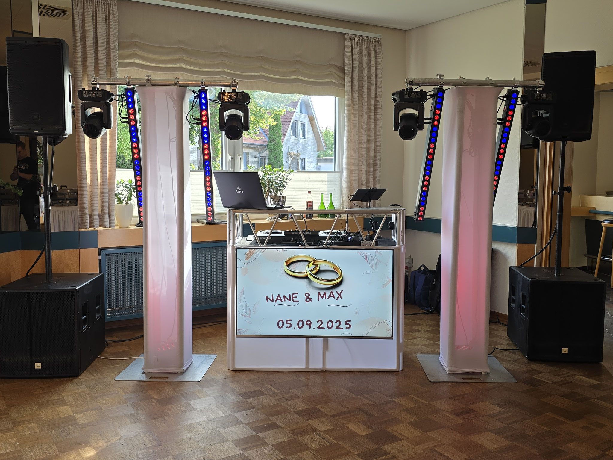 Ich arbeite ausschließlich mit hochwertigem Equipment namhafter Hersteller, um glasklaren Klang und beeindruckende Lichteffekte zu garantieren. So entsteht die perfekte Atmosphäre – damit Sie und Ihre Gäste jede Minute genießen können.